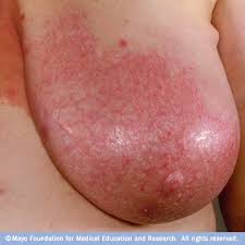 Se manifiesta por una excoriación roja granulosa del pezón, o por una lesión seca y escamosa que sangra fácilmente por contacto. A veces afecta toda la aureola. Se acompaña siempre de Carcinoma Subyacente.